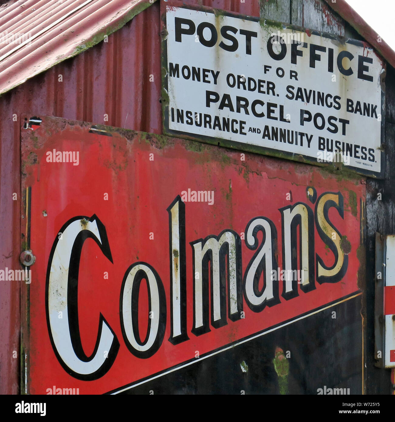 Enameled Metal Advertising Boards Or Signs From A Bygone Era With Design Of Embossed Words And Illustration Peeling And Rusted Enamel Paint Of Vintag Stock Photo Alamy
